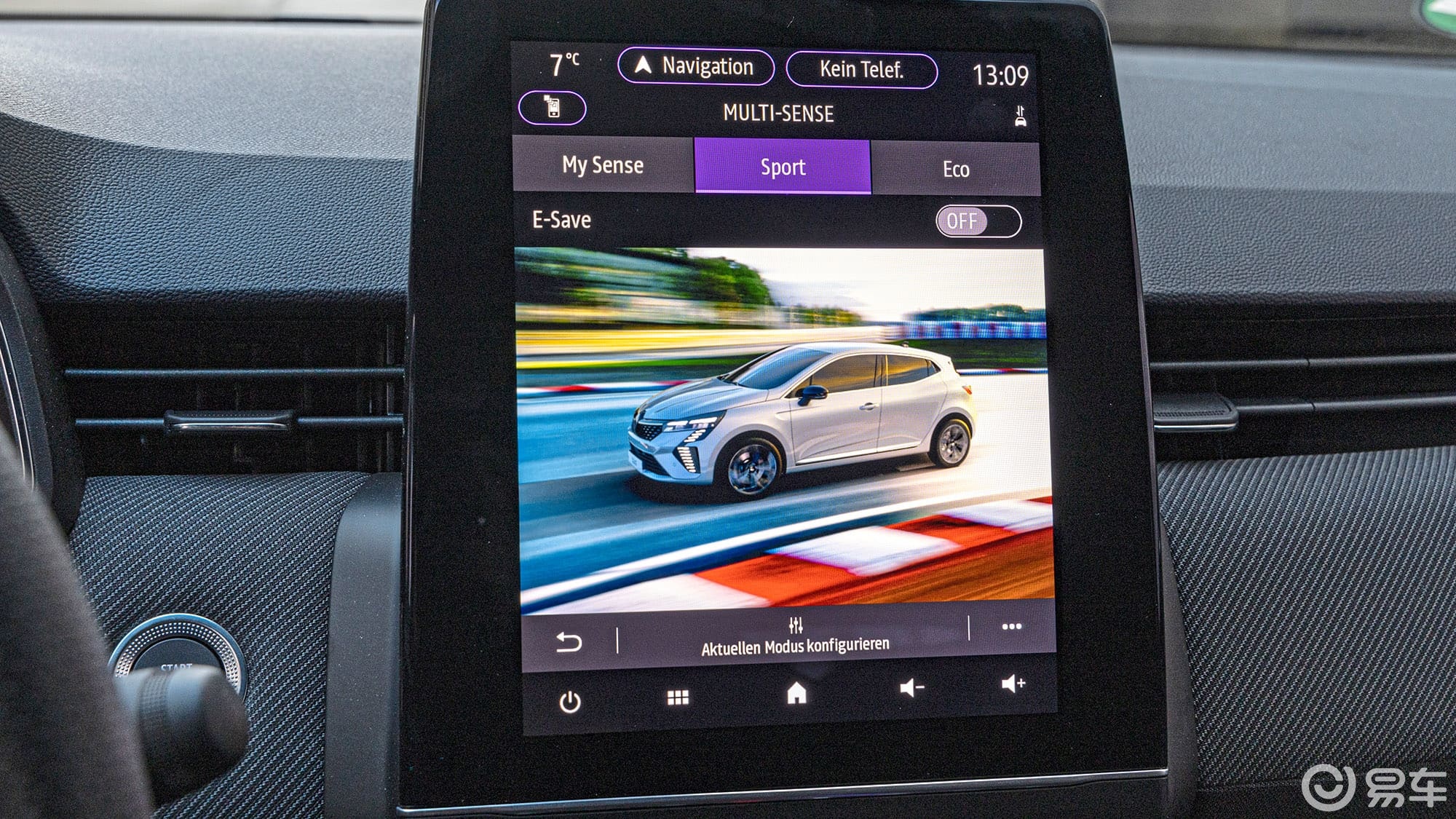雷诺Clio的混动系统由1.6升自然吸气汽油机、两台电机和1.2千瓦时电池组成,搭配6挡多模式变速箱(类似赛车爪式变速结构)。起步电动化平顺,但加速整体偏软。发动机经常为电池充电,转速与车速不总是很匹配。效率尚可,但制动踏板反应模糊,需要时间适应。