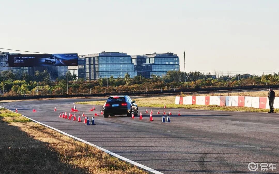 蛇形绕桩是由桩桶在空场摆出的小的科目路线,还有U形弯和紧急变线到刹停的环节。体验使用的是奥迪RS4车型,相对而言RS4车身更紧凑一些,2.9T的V6动力足够强劲,令人惊喜的是它的转向在保证精准的前提下力度并不沉,更加易控。