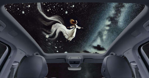 此方案需要提前把图案加工到玻璃天窗,营造一定氛围感,但图案相对单一,不能显示高清动态影像。