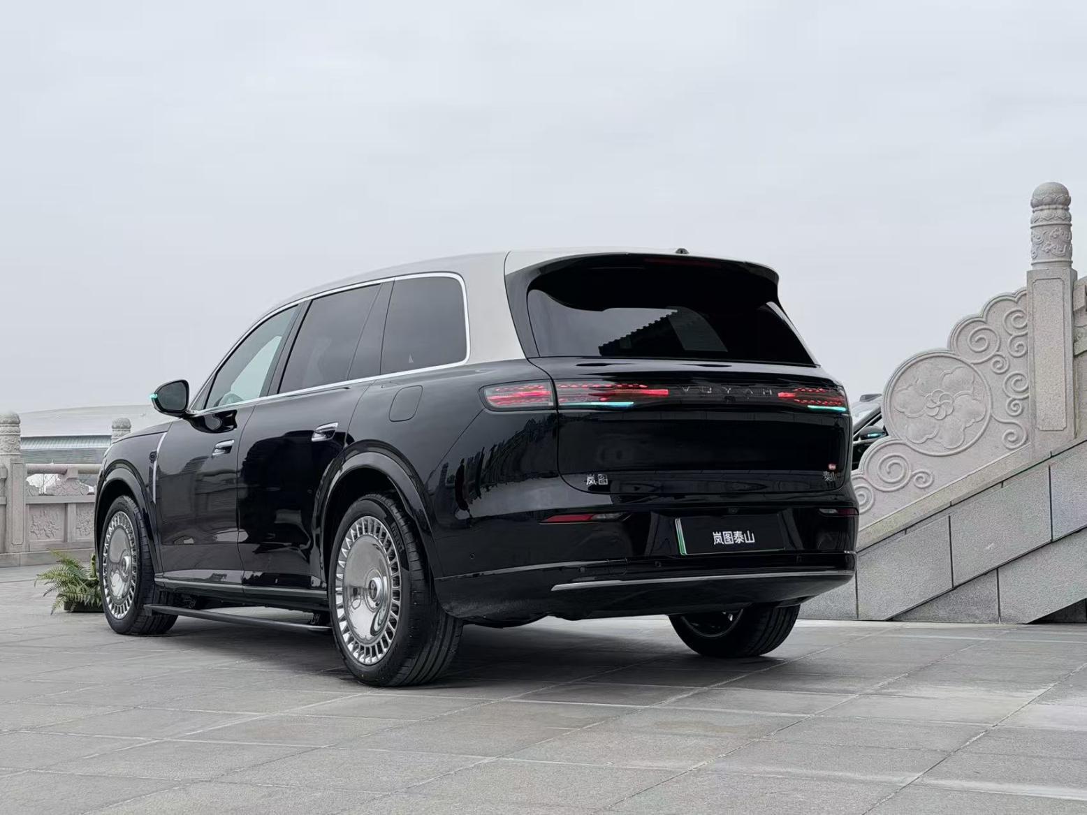 车身侧面,岚图泰山以“山海交融”的曲面取代传统腰线,以光影流动勾勒出刚柔并济的形态。5230/2025/1817毫米的车身尺寸以及3120毫米的轴距,营造出大气磅礴的体态,配合精心雕琢的“四大黄金比例”——长高比2.87、轮高比2.25、宽高比1.114、前鼻占比59.68%,共同构建出如泰山般挺拔稳健、不怒自威的视觉形象。