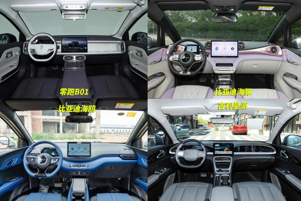 不聊虚的,直接上干货。先说结论:一个一步到位,一个均衡之选,两个实惠入门。想“一步到位”,直接看零跑B01:它根本不是小车,是来降维打击的,价格摸到10万边,但给你A+级轿车的尺寸、全系配后多连杆独立悬架,它的配置可以说是越级的存在。想要精品小车,比亚迪海豚是均衡之选:各方面都比较均衡,空间利用率高。追求实惠,海鸥和星愿二选一:海鸥设计年轻,星愿空间利用,都是合格的“城市精品代步车”。