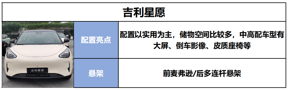 吉利星愿的储物空间设计是一大亮点,储物格比较多,在车上放一些小物件就很顺手,蛮实用的,中高配车型会给你大屏、倒车影像、皮质座椅等,而且全系采用前麦弗逊后多连杆悬架,操控稳定性以及乘坐舒适性相比扭力梁悬架要更胜一筹。