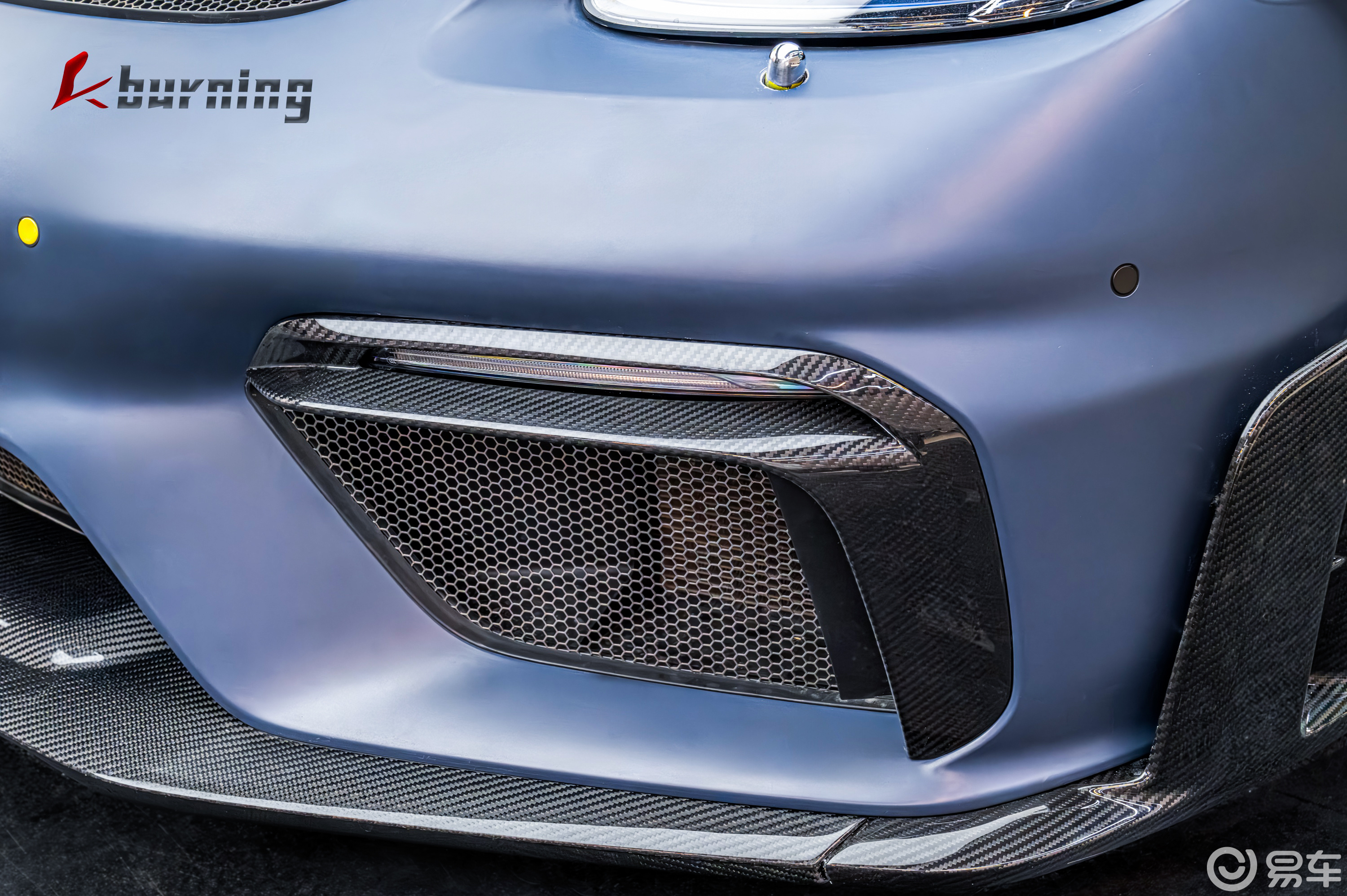 升级后的718GT4 RS 前脸相比原车加大了进气口设计,升级了矩阵款式大灯,前杠两侧的叶子板更大更夸张,战斗气息拉满并设计碳纤维进风口,此外机盖则与991GT3 RS 是同款机盖一眼就能分辨设计。