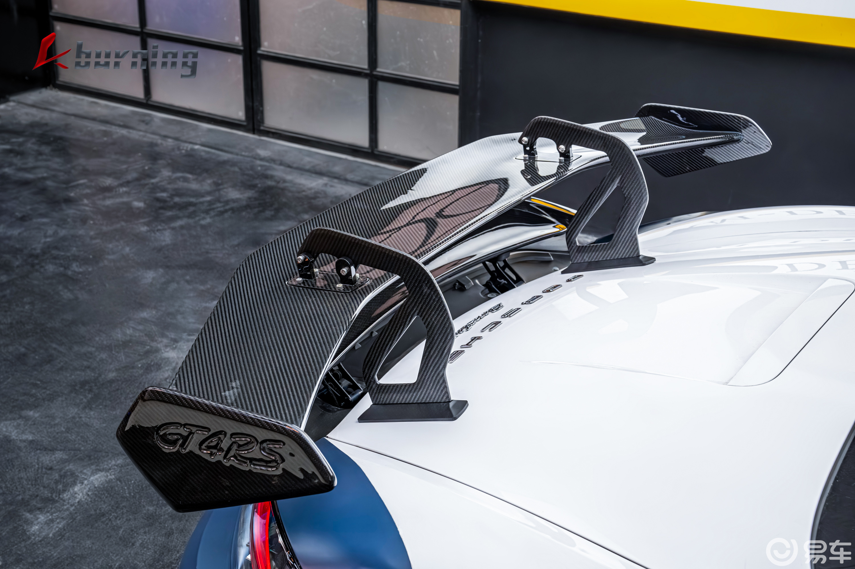 车位部分后唇和双侧尾喉,专属RS小尾翼,及最具辨识度的 RS专属鹅颈大碳纤尾翼,大大提高了空气动力学效率,在性能方面上,相比保时捷 718 Cayman GT4,下压力提高了 60 %。可保证车手能够在赛道上获得最大抓地力和驾驶乐趣。