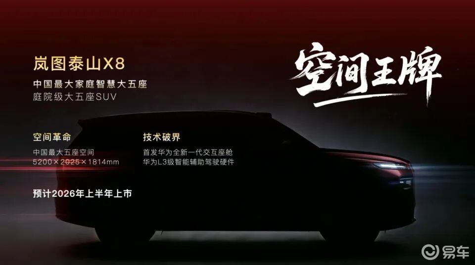 岚图此次推出的四款新车分工明确、定位清晰,形成了互补的产品矩阵。作为“智驾王牌”的岚图泰山Ultra,定位中大型SUV,计划2026年3月率先交付,也是中国首款量产L3级SUV,搭载华为乾崑智驾ADS 4四激光解决方案,配备智能调光隐私车窗等豪华配置,目前其L3级智驾测试车已进入最后冲刺阶段,承担着市场试水、技术验证与用户反馈收集的关键任务。同为SUV品类的岚图泰山X8主打“空间王牌”,将于2026年上半年上市,车长5200mm、宽2025mm、高1814mm,定位“庭院级大五座SUV”,致力于打造可移动的家庭生活空间,搭载华为最新一代智能座舱系统,适配多元家庭出行需求,与泰山Ultra形成差异化布局,覆盖不同SUV用户群体。