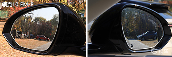 在外后视镜视野范围测试环节中,吉利银河E8测试成绩突出,两侧外后视镜视野范围均达到同级别中上游水平。宝马M5新能源虽然左右两侧外后视镜均采用双曲率镜片,不过只有右侧外后视镜测试成绩好于同级别车型测试均值。相比较而言,领克10 EM-P的右侧外后视镜视野范围角度与同级别车型测试均值差距较大,有待优化。
