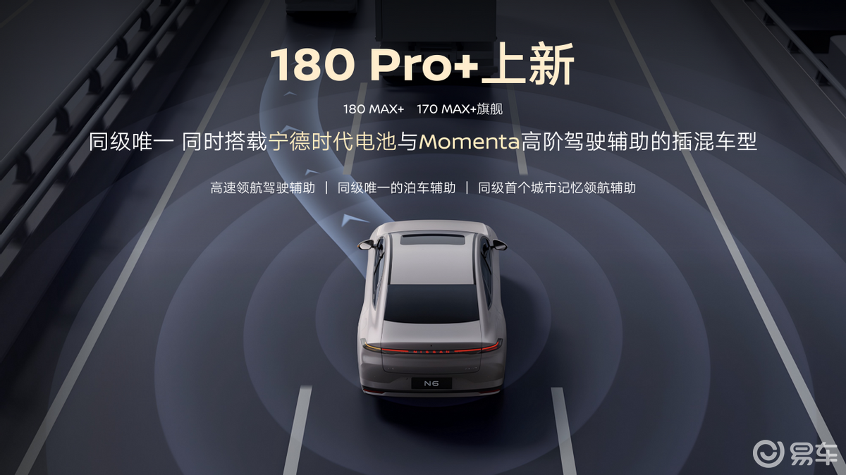 同时,N6 180 Pro+搭载宁德时代电池,以及东风日产与Momenta定制开发的组合驾驶辅助,成为同级唯一配备两大核心配置的插混车型,该系统涵盖高速领航驾驶辅助、同级唯一的Momenta泊车辅助,以及同级首个城市记忆领航辅助,可以轻松应对高速汇入、避让大车、复杂车位泊车等场景,有效缓解长途驾驶疲劳与城市停车难题。