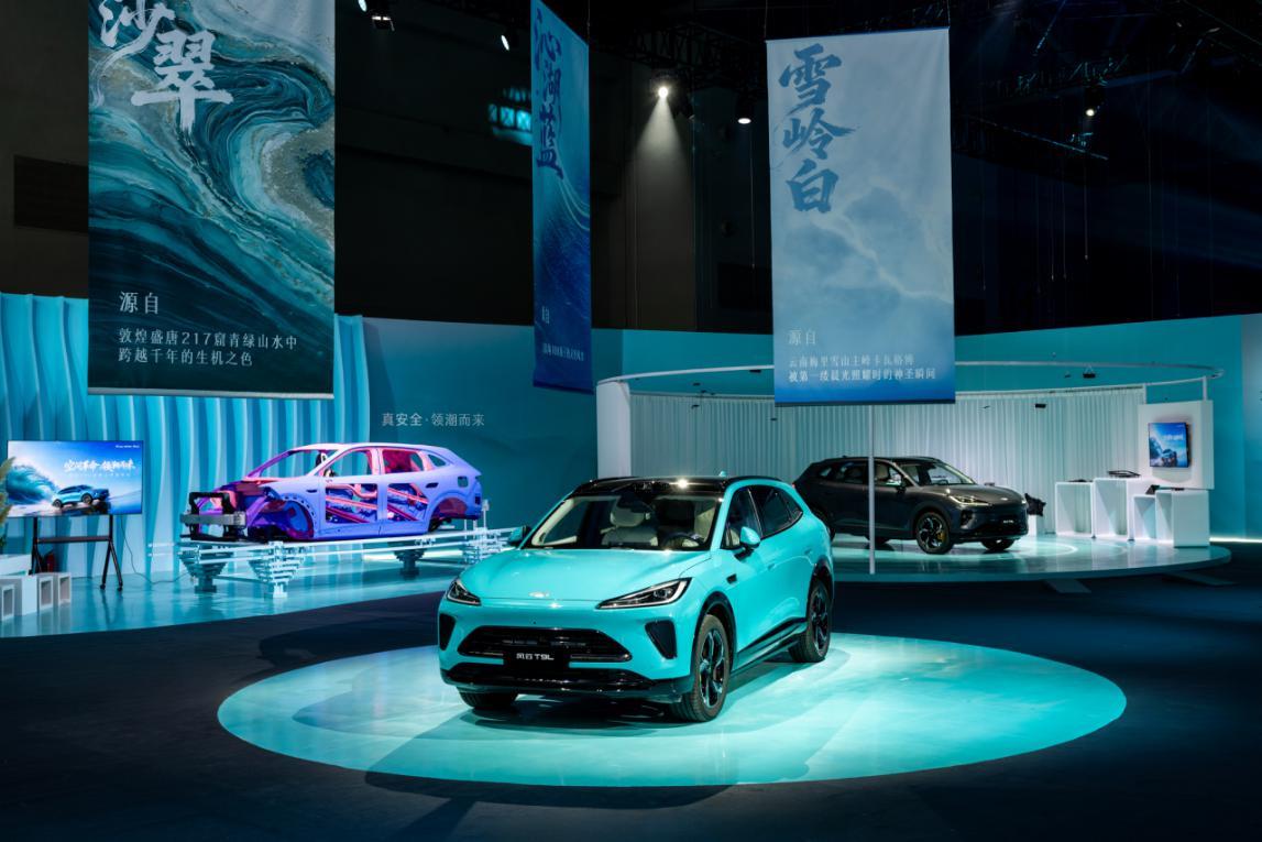 尤其值得一提的是车身色彩。风云T9L推出了六款源自华夏山河的自然灵感车色。其中,与敦煌画院联名打造的 “鸣沙翠” ,其灵感直接取自莫高窟壁画的青绿山水,配合豪车级的8层车漆工艺,实车在光影下流转着跨越千年的生机与高级感。坐进车内,“文房雅居” 的环抱式座舱、256色流萤氛围灯以及抚琴立式高音音响,让每一次出行都如同置身于移动的东方文化展厅。