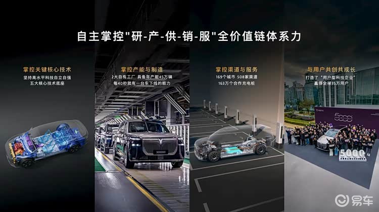 车展首日,岚图正式宣布加速发力纯电赛道,开启纯电战略新阶段,这是其面向未来的核心增长引擎。根据规划,岚图将推出多款纯电产品,预计 2027 年纯电车型销量占比超过 50%,同时同步布局超充桩网络,解决纯电用户的补能焦虑。内行都清楚,岚图此举并非盲目跟风,而是基于自身全价值链体系能力的必然选择 —— 岚图拥有两座国家级示范工厂,年产能 45 万辆,每 40 秒即可下线一台车;累计拥有 6102 件专利,构筑五大坚实技术底座;国内渠道覆盖 169 个城市、508 家门店,合作充电桩达 163 万个,用户超 35 万。这样的体系能力,为纯电战略落地提供了坚实支撑,也让岚图在高端纯电赛道上,具备了与传统豪华品牌及新势力抗衡的实力。